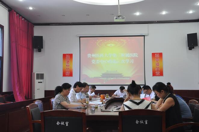 6月6日上午9点30分,贵医大三附院党委在沙坝院区行政楼会议室组织2016年度第二次中心组学习,由党委书记杨峰主持,参加部门及人员有党委中心组成员、两办主任、各支部书记及党群部门负责人。