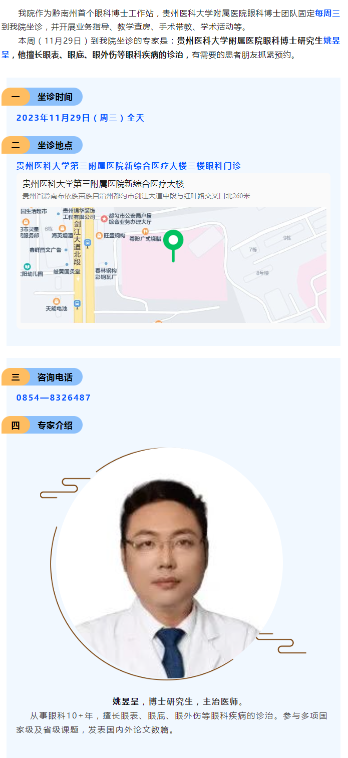 【贵医专家在都匀】11月29日眼科博士姚昱呈来我院坐诊!速约~