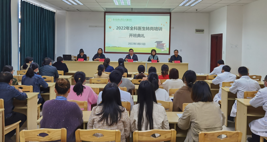 3月15日,我院2022年全科医生转岗培训开班典礼在沙坝院区全科楼一楼会议室举行,党委副书记、院长刘兴贵出席,全科医生转岗培训带教老师、学员及科教科全体人员参加。