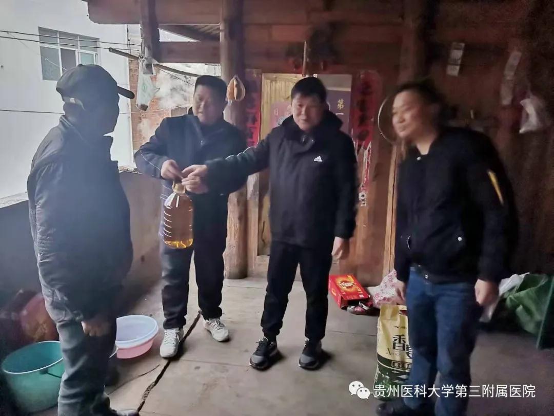 1月19日,在医院的安排下,我院医联体发展部与市政协机关、乡镇干部、乡村振兴驻村干部等有关人员,深入平浪镇卡鲁村、匀东镇新场村,看望慰问曾在我院住院的20余户困难群众,为他们送去油、米、药品等物资,提前送上新春的祝福和问候。