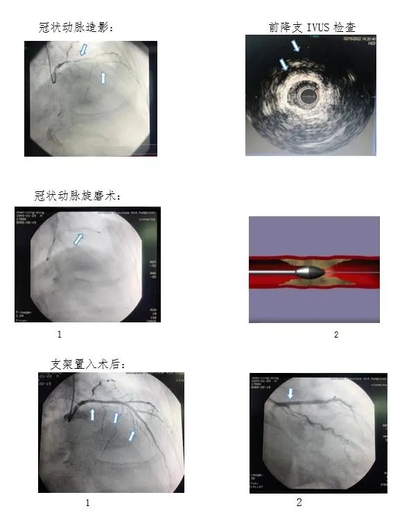 经与患者及家属沟通,心内科认真分析,充分讨论后决定为患者行冠状动脉旋磨术处理近中段重度钙化病变,开通冠状动脉后再行支架置入治疗。旋磨术与以往的冠脉介入手术的方式一样,也是局部麻醉,老人全程清醒,只需要安静地平卧于手术台上。医生在其穿刺部位皮下注射利多卡因,然后进行动脉穿刺,留置鞘管,再通过鞘管输送手术所需要的各种导管、导丝等介入器材。一切准备就绪,心内科在血管内超声指引下,采用高速旋磨头以分次旋磨的方法,凭借着高超精准的手法、细心认真的操作,成功为老大爷清除了冠脉内的钙化斑块最严重的部分,使狭窄的管腔变大,内膜变光滑,成功置入支架,让前降支血流恢复正常,手术顺利完成。术后,患者顺利康复出院心脏耐力明显升高,能下床进行日常活动。目前已康复出院。