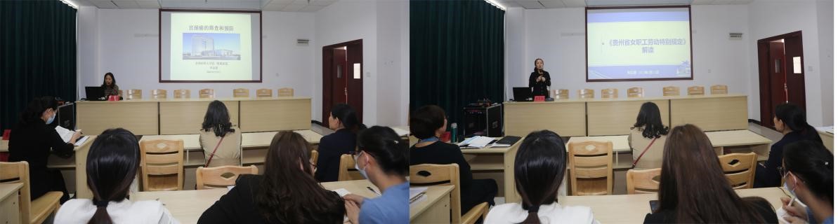 我院妇科主任、主任医师李远珺以“宫颈癌的筛查及预防”为题进行授课。女职工委员会主任朱红妞对《贵州省女职工劳动保护特别规定》进行解读。