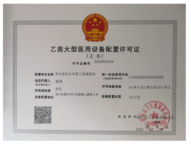 64排CT配置许可证(沙坝院区)