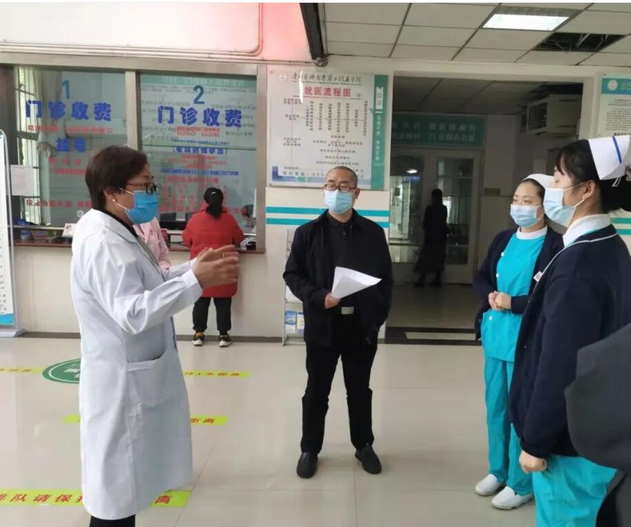 3月28日下午,党委副书记杨胜华带领门诊部、财务科、工会、院感科、信息科等部门到沙坝院区门诊大厅、核酸采集处开展现场办公,就如何更好地解答核酸检测相关事宜进行督导。在各部门的相互协作下,上述问题得到了有效解决。