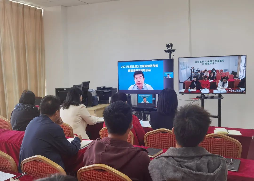 近日,国家卫生健康委医管中心举办了2021年度三级公立医院绩效考核数据填报视频培训会,医院党委书记姚辉、党委副书记杨胜华及相关部门人员在远程会诊中心同步观看。