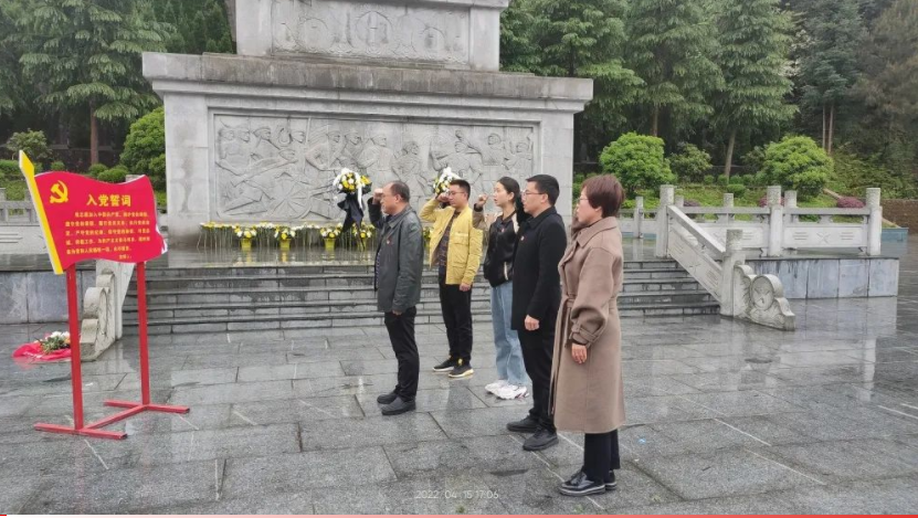 在烈士纪念碑前,全体党员神情肃穆,怀着万分崇敬的心情向革命先烈默哀悼念,并依次献上鲜花,深深鞠躬,表达对先烈的追思。