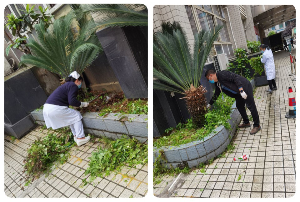 在清除杂草的过程中,大家紧密配合,将医院绿化区的杂草一一清理干净。大家纷纷表示,不仅要清理院区杂草,更要时时清扫心灵上的“尘埃”,拔除思想上“杂草”,为人民群众的身体健康保驾护航。