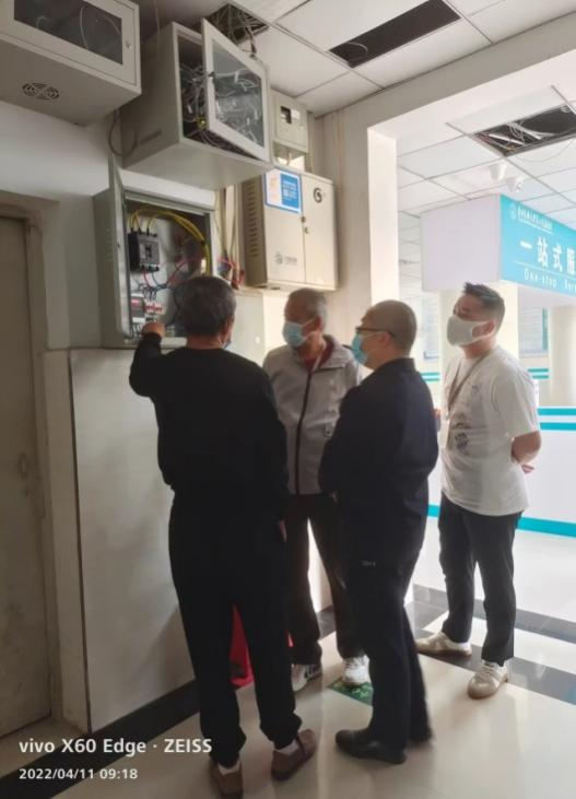近日,我院党委副书记杨胜华带领保卫科、总务科工作人员对沙坝院区的线路和用电安全进行巡查,深入各临床科室、住院病房等重点区域,对配电箱、用电线路情况进行详细排查。对发现的情况当即责成整改,消除安全隐患。