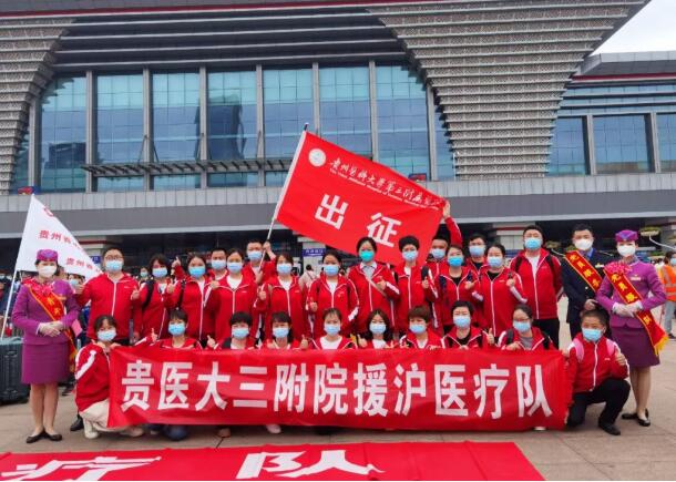 4月26日,贵医大三附院25名医务人员(4名医生、20名护士、1名院感人员)奔赴上海支援抗疫。