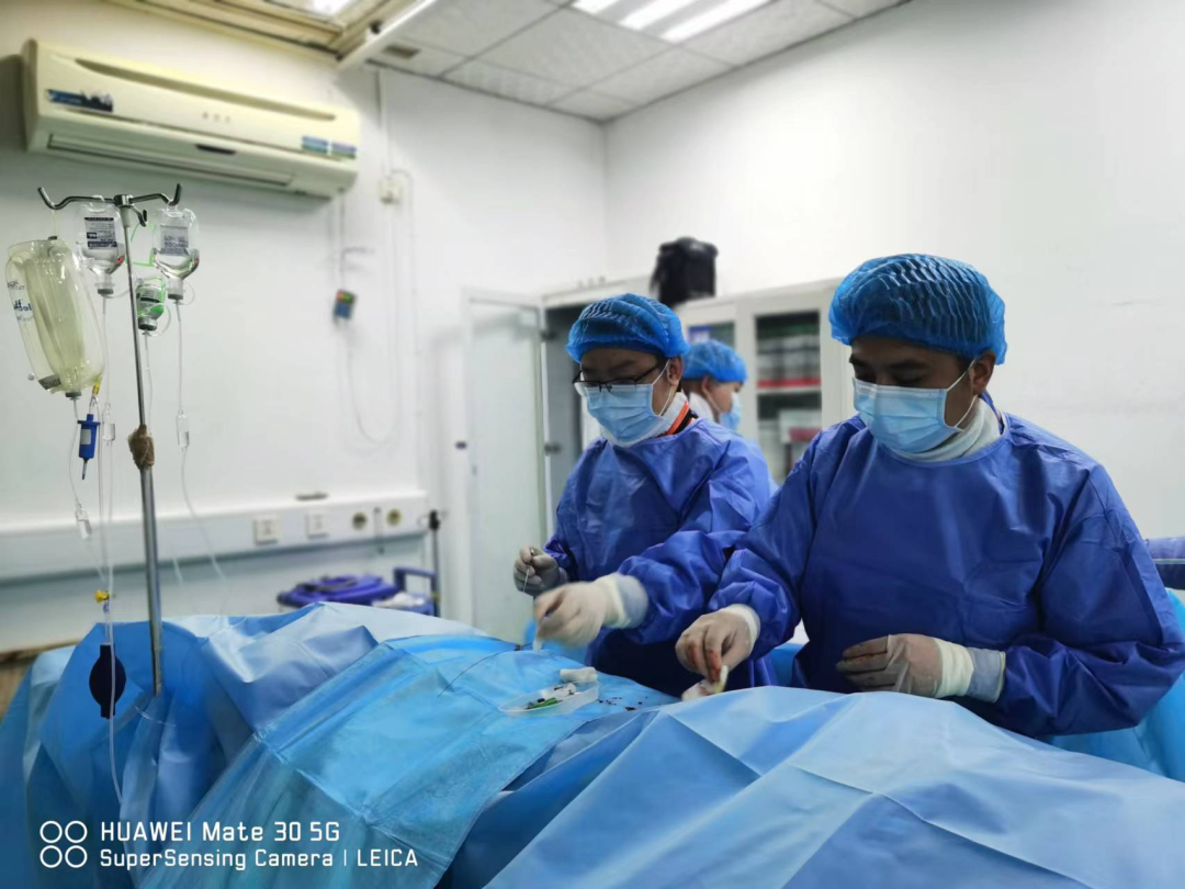 首先由心血管内科万瑞廷医生为患者进行冠状动脉造影术。随后介入科副主任艾奇渊使用同一动脉穿刺点完成脑血管造影,进一步明确纶爷爷颈动脉、椎动脉及颅内血管疾病情况,为下一步治疗提供准确的指导。