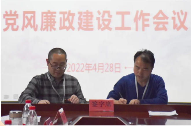 会上,姚辉与班子成员签订了履行“一岗双责”责任书。