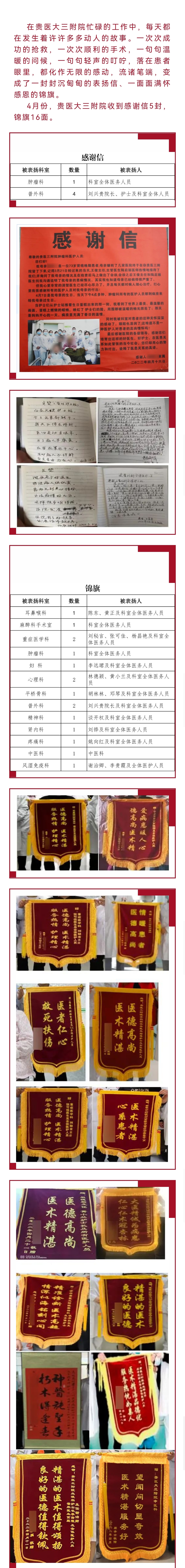 4月份,贵医大三附院这些科室和个人收到患者赞扬