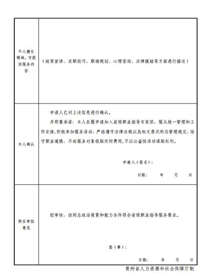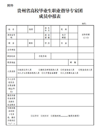 1.《贵州省高校毕业生职业指导专家团成员申报表》;