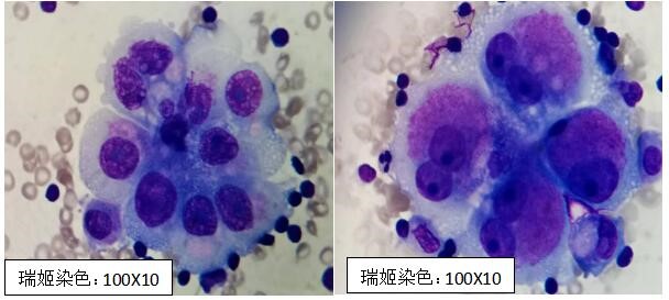 患者,男性,因社区获得性肺炎反复治疗无效入院,影像学检查发现有胸水。胸水细胞学检测发现异常细胞,通过病理检查结果,最终诊断为肿瘤。