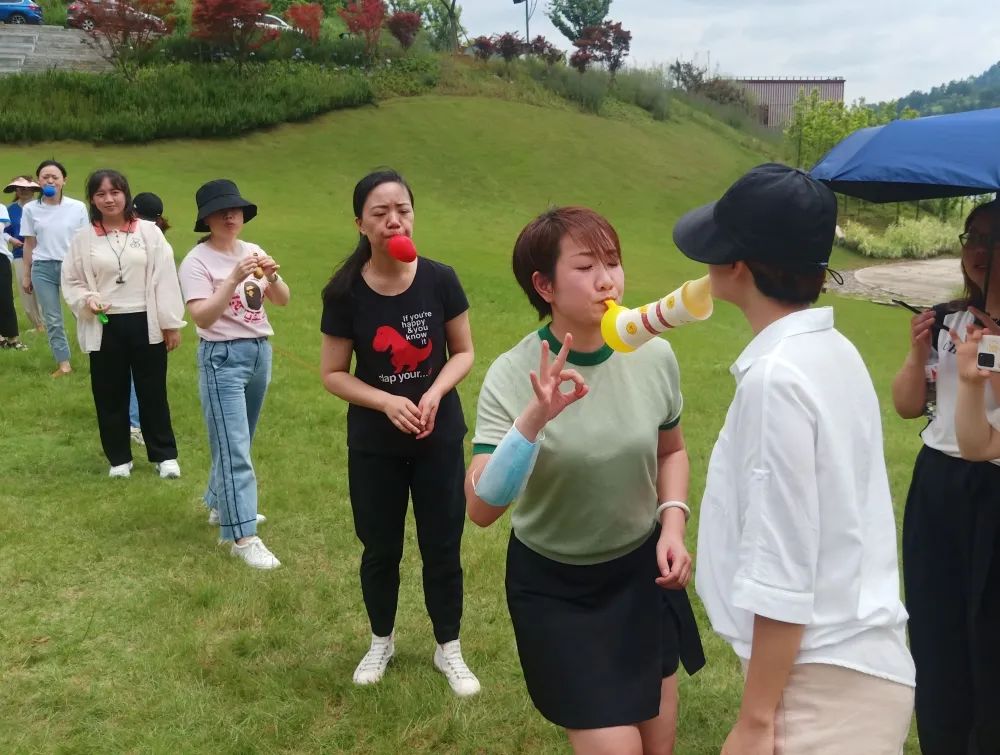 活动采取随机分组方式分成7个小组。设置了“穿越封锁区”“气球传纸杯”“珠行万里”“夹纸运杯”“蒙眼找人”五个环节。