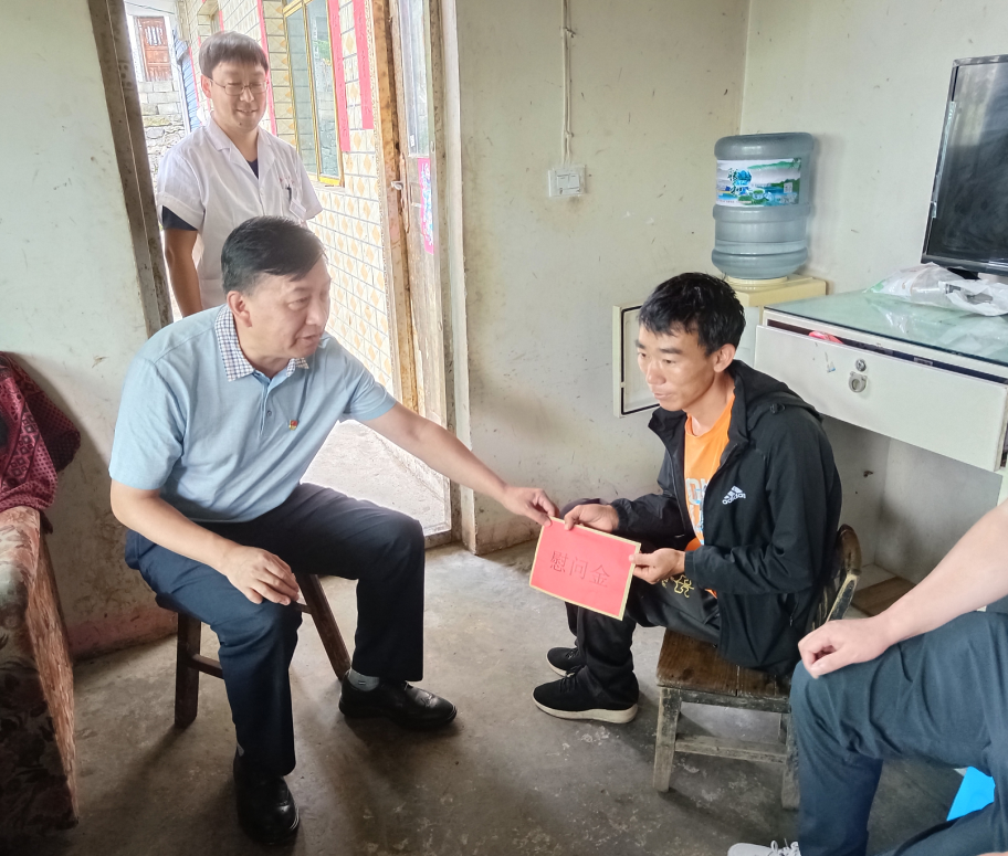 会后刘兴贵一行到五控组看望脱贫、残疾户邓天洪,亲切询问他的身体状况,详细了解其务工收入、家庭生活状况,并送上慰问金。骨科主治医师高登宁为邓天洪检查身体,为其健康保驾护航。邓天洪高兴地说:“感谢刘院长和各位领导的关心,党和政府这么关心我、帮助我,我会坚强生活,努力劳动的。”