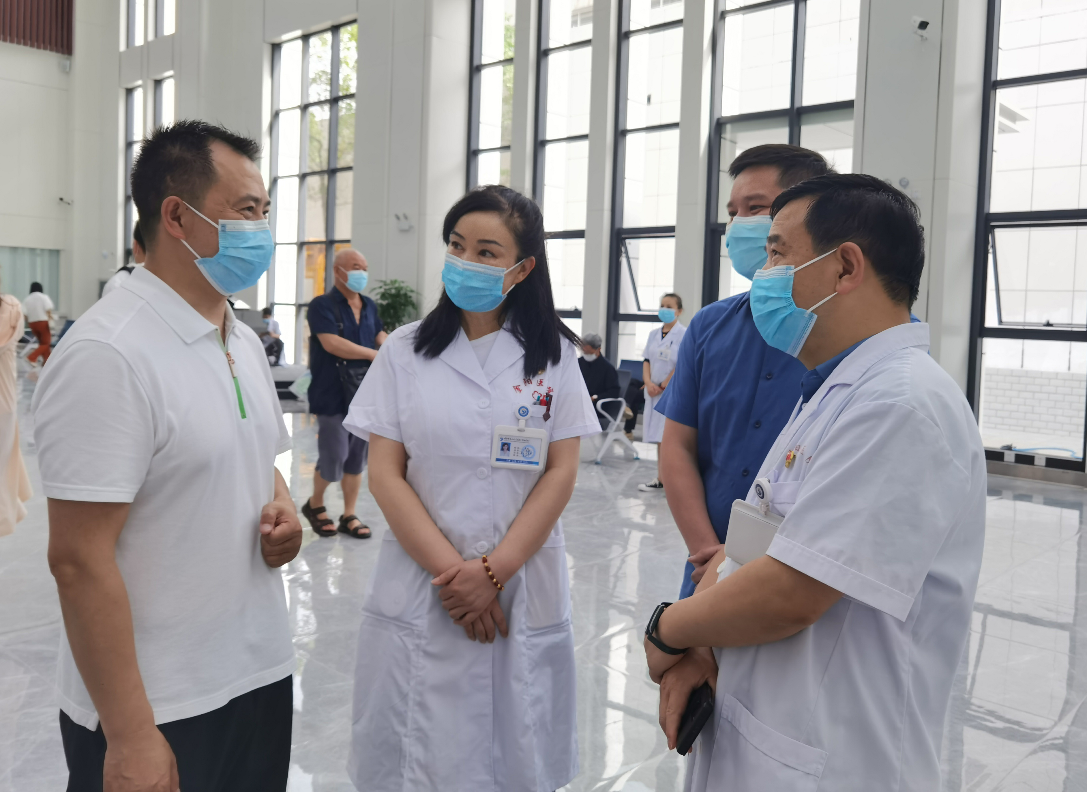 7月11日,院党委书记姚辉带领党委办公室副主任屈娟、肿瘤科负责人王俊一行到贵阳市第二人民医院交流学习。贵阳市第二人民医院院长李昆、党委副书记聂斌、党委办公室、院长办公室、宣传科、门诊部、一站式服务中心、肿瘤科等部门负责人陪同。