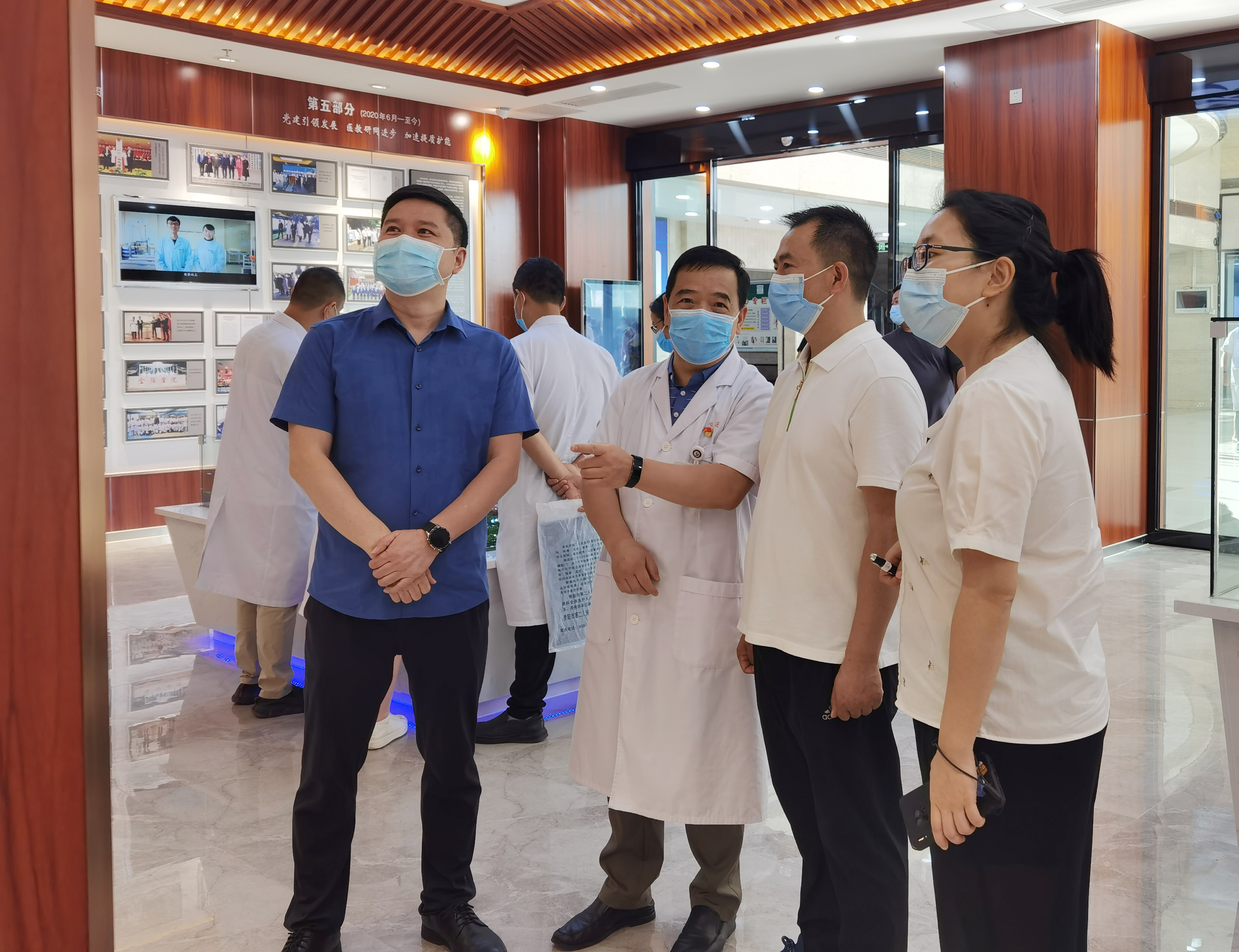 姚辉一行实地参观了贵阳市第二人民医院门诊大厅、院史馆、一站式服务中心、党建文化广场。参观过程中,李昆、聂斌详细介绍医院运行、党建工作开展情况。