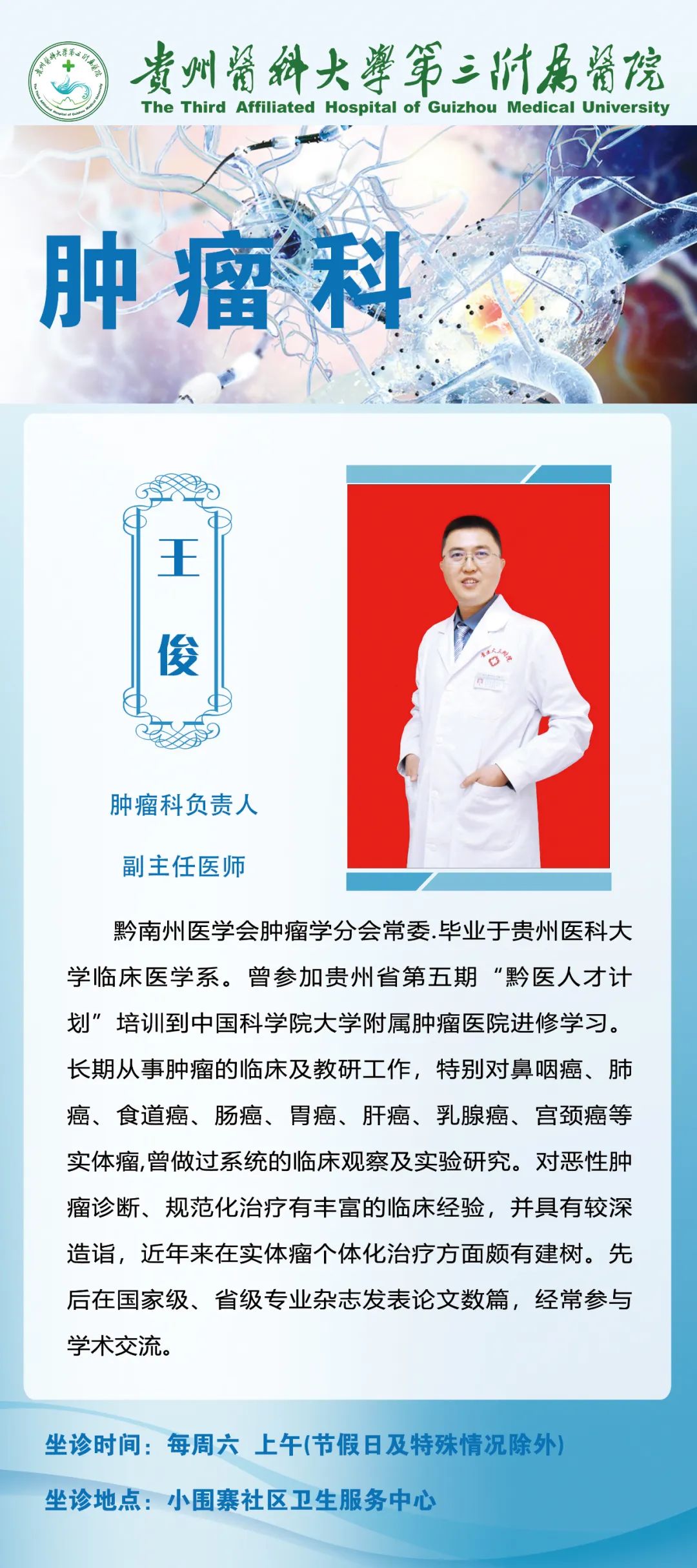 贵医大三附院肿瘤科专家王俊每周六到小围寨社区卫生服务中心坐诊