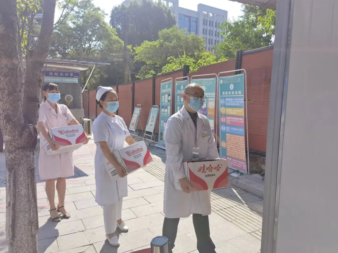 近日,我院党委副书记杨胜华、工会副主席姜芬、女工委员会主任朱红妞、体检中心副科长吴波一行到核酸采集室,看望慰问奋战在高温一线的工作人员,并为他们送去瓶装饮用水。杨胜华对采集室工作人员在高温天气下热情、认真的工作态度给予肯定,指出采集室作为检测核酸的第一线,要严格落实各项防护措施,进一步完善工作机制,确保采样服务高效优质。相关部门要落实防暑降温措施,做好后勤保障工作,确保采样人员以饱满的精神状态投入工作。
