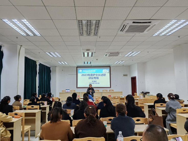 1月5日,我院护理部组织召开2023年度护士长述职评议考核会议,相关职能部门负责人组成考评小组担当评委,全院护士长参加。