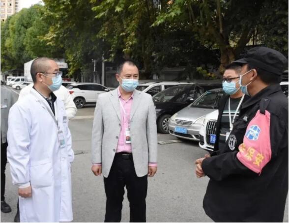 10月10日,党委书记姚辉、党委副书记杨胜华带领党委办公室、门诊部、保卫科深入临床一线,督导疫情防控和安全生产工作。
