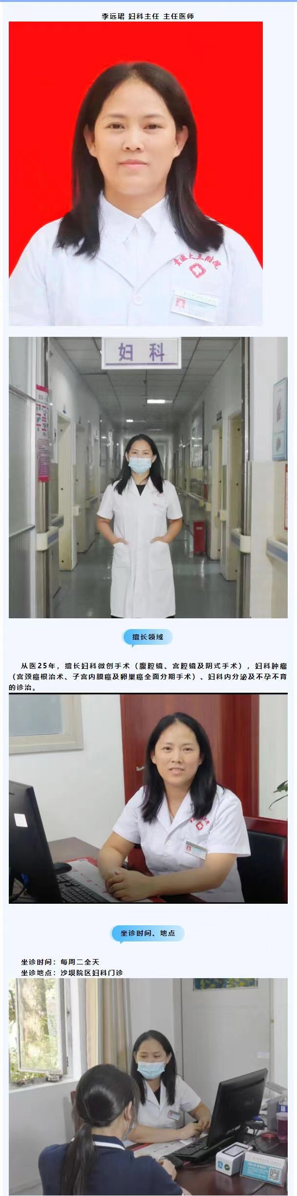 李远珺:从医25年,擅长妇科微创手术、肿瘤、不孕不育等诊治