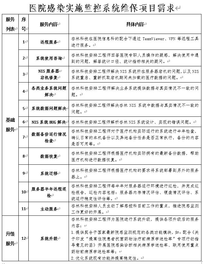 三、采购的货物或服务说明:医院感染实时监控系统维保服务(详见附件)。
