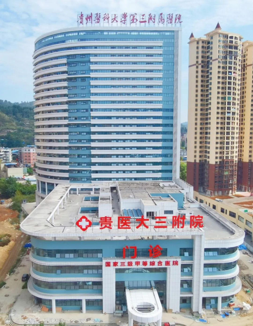 贵州医科大学第三附属医院是国家三级甲等综合医院,医院新综合医疗大楼面积超过6.6万平方米,包括地面建筑23层、地下停车场2层,配备19部电梯,投入使用后床位增加至1500余张。