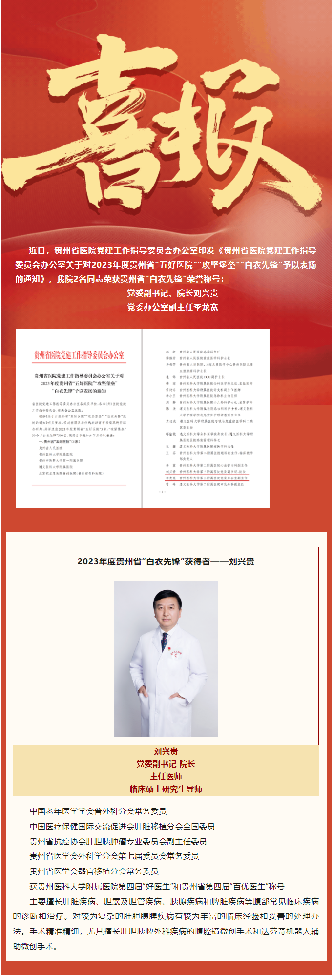 2022年3月,刘兴贵调到贵州医科大学第三附属医院任党委副书记、院长,在他刚上任的第2天,就有患者听闻他是贵州省著名的肝胆胰脾疾病专家,从事临床工作30余年,做过10000多例胆囊切除及肝胆胰脾手术,慕名到医院求医问诊。刘兴贵当天就为她做了检查,并于2022年3月17日亲自为她实施了腹腔镜下胆囊切除术和肝囊肿开窗引流术。手术十分成功,患者顺利康复。杨女士的家属由衷地说:“贵医大三附院服务十分贴心,院长是省内这么著名的专家,亲自为我爱人做手术,我非常放心,也觉得很暖心,点赞!”