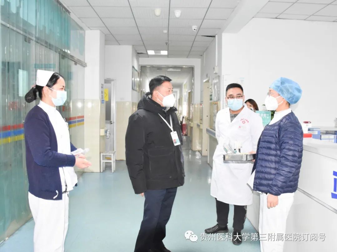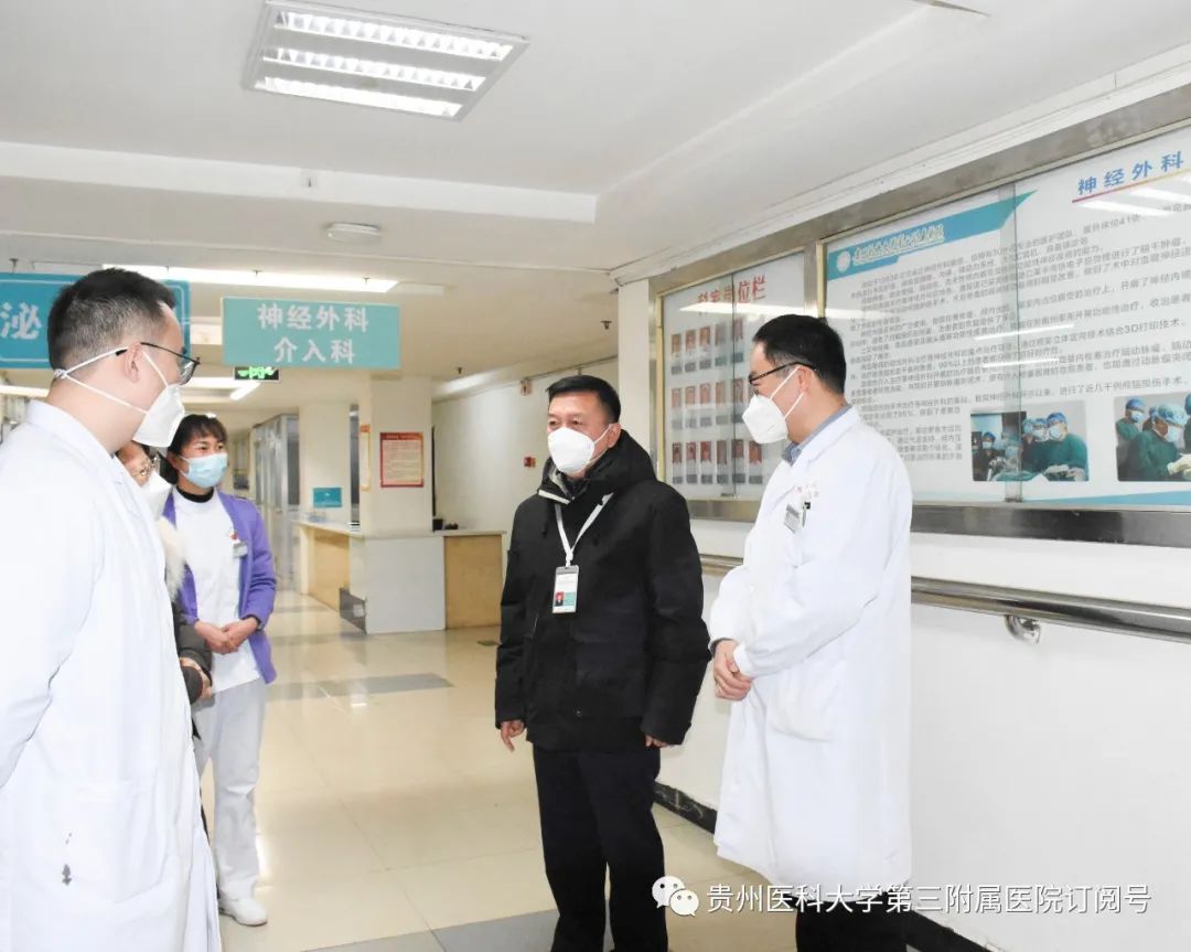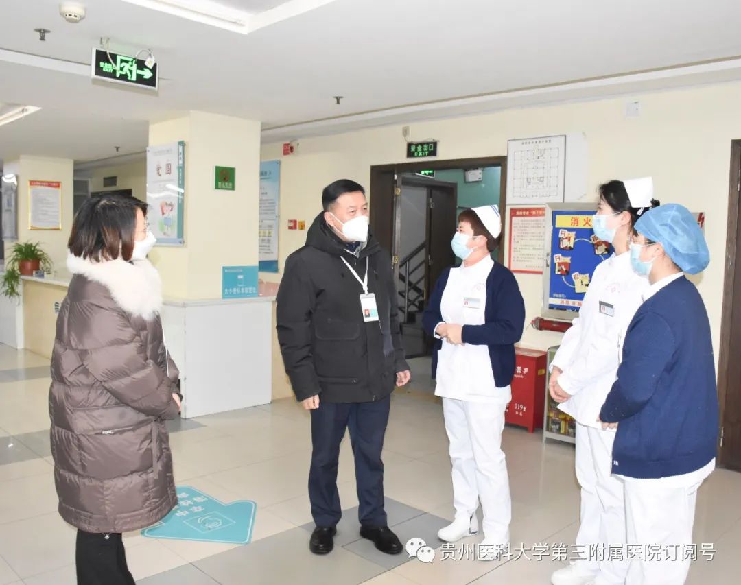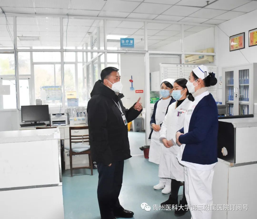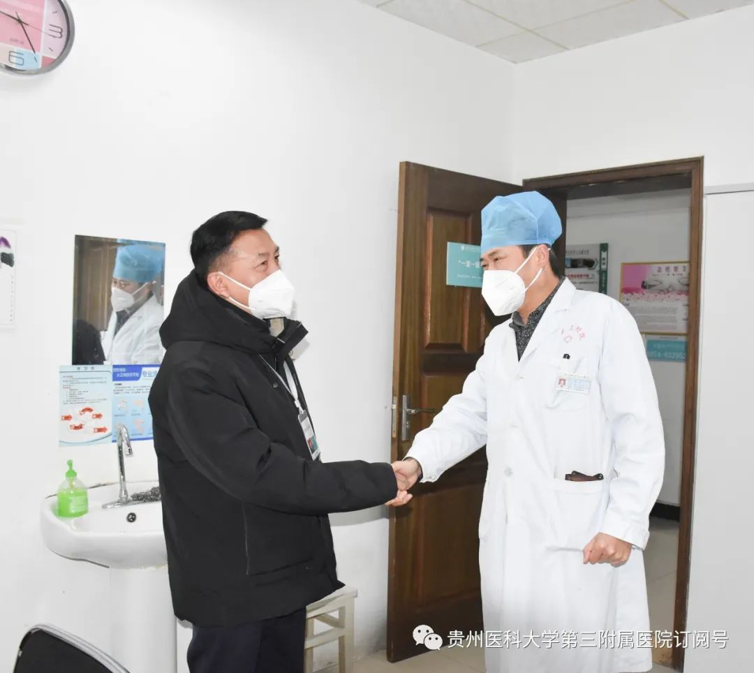 每到一处,一句句“新年好!”一声声“你们辛苦了!”包含着刘兴贵最诚挚的祝福与问候。刘兴贵强调,各科室要用心用情用力做好节日期间的安全生产工作,时刻紧绷医疗安全这根弦,把患者生命安全放在首位,确保职工、患者度过一个祥和的春节。