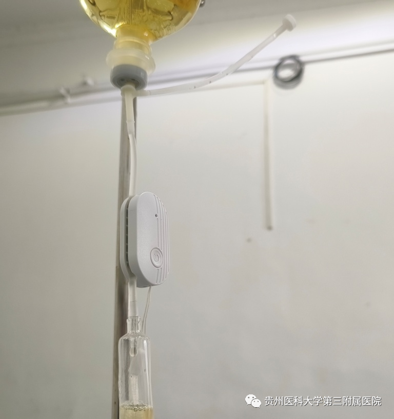 “输液报警器”是将其夹在输液器莫非氏滴管的上方,在液体输完时会自动发出“滴滴滴…….”的报警声。听到报警声后,护士能第一时间为患者更换液体,确保患者的输液安全。