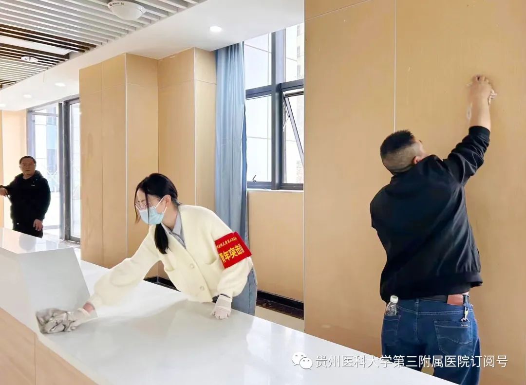 3月10日,为如期搬入“新家”,弘扬“艰苦创业、无私奉献、团结协作、勇于创新”的“三线精神”,落实“过紧日子”的要求,全院职工利用空闲时间到新综合医疗大楼开展大扫除,一起来看看这些“最美劳动者”的身影吧!