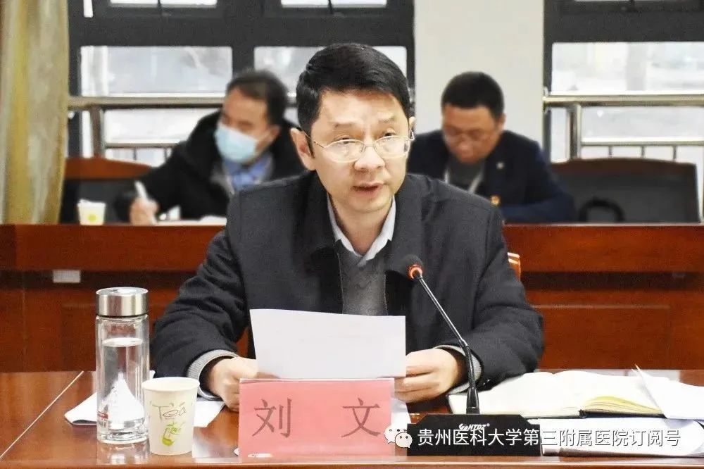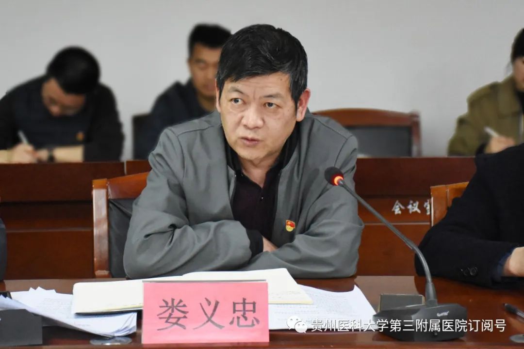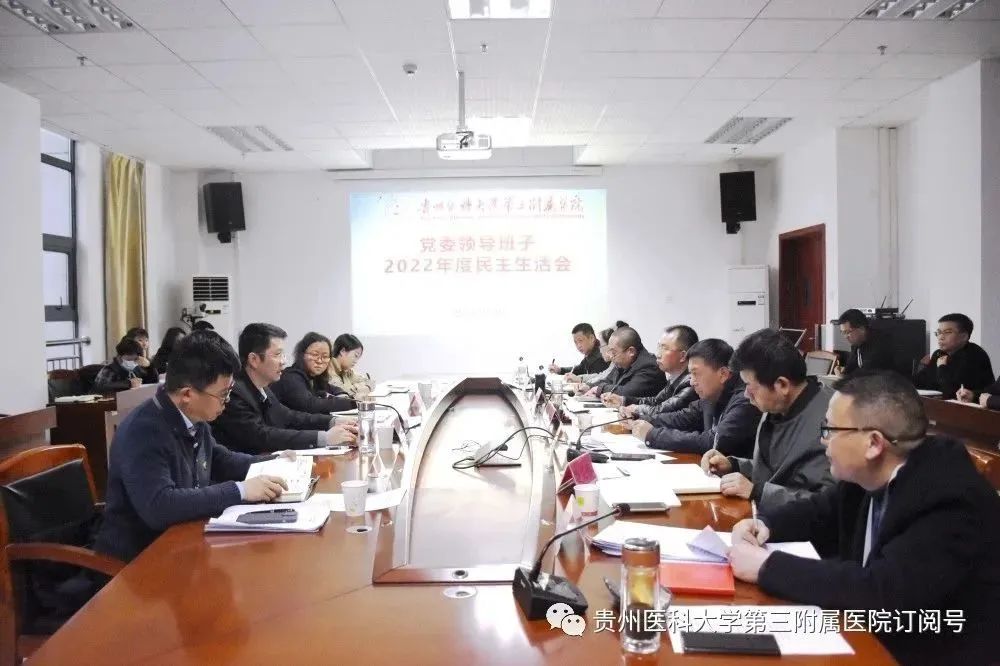 3月23日,我院在行政楼三楼会议室召开党委领导班子2022年度民主生活会。贵州医科大学党委副书记刘文,贵州医科大学党委第十三督导组组长、党校常务副校长、党委组织部副部长李红,党委组织部(党校)干部科科长吴赟,省纪委省监委派驻贵州医科大学纪检监察组一级初级纪检监察员李涵璐到会指导。医院党委领导班子成员出席,民主党派副院长、各党支部书记、相关职能部门负责人、民主党派代表、离退休同志代表列席,会议由党委书记姚辉主持。
