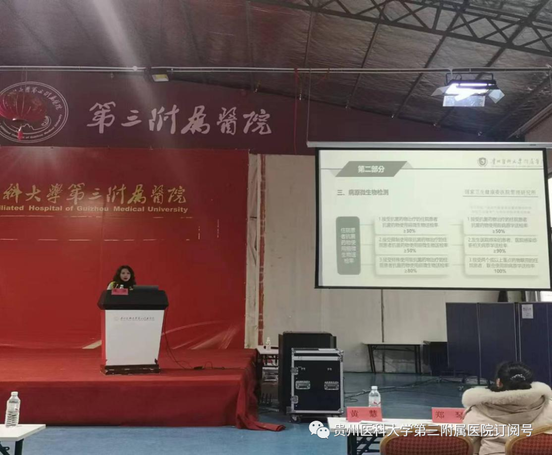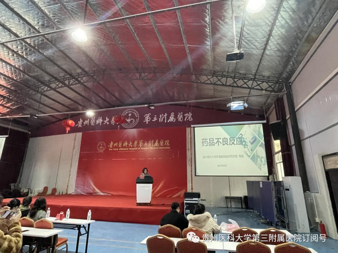 当天下午,开展了专题讲座。由贵州医科大学附属医院药学部副主任药师梅璇、抗感染临床药师谭琳、主管药师李昌琴分别开展药品不良反应、抗菌药物临床应用和浅谈麻醉、精神药物管理培训。