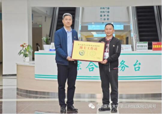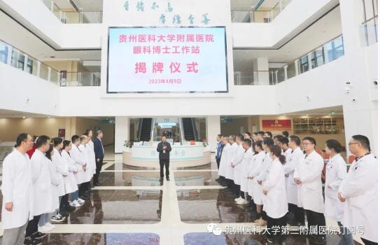 姚辉、谷浩为“贵州医科大学附属医院眼科博士工作站”揭牌。
