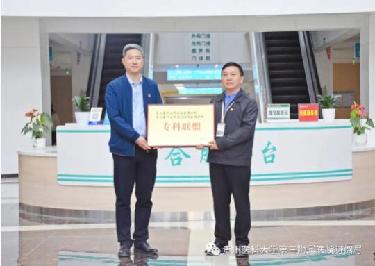 刘兴贵、谷浩为“贵州医科大学附属医院眼科 贵州医科大学第三附属医院眼科专科联盟”揭牌。