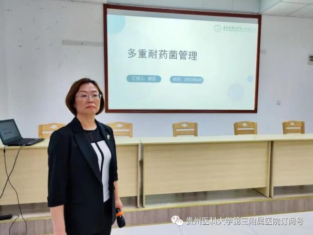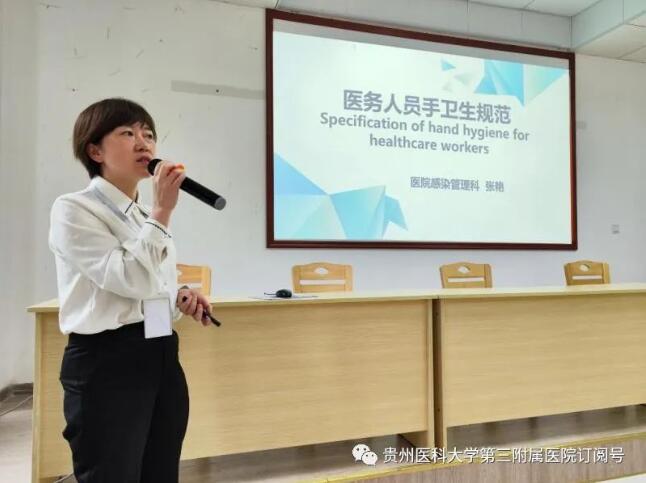医院感染管理科副科长张艳、主任医师熊芸、副主任护师蒙桂鸾结合院感督查实际情况,为大家进行了《医务人员手卫生规范》《多重耐药菌管理》《医疗机构环境表面清洁与消毒规范》的培训。