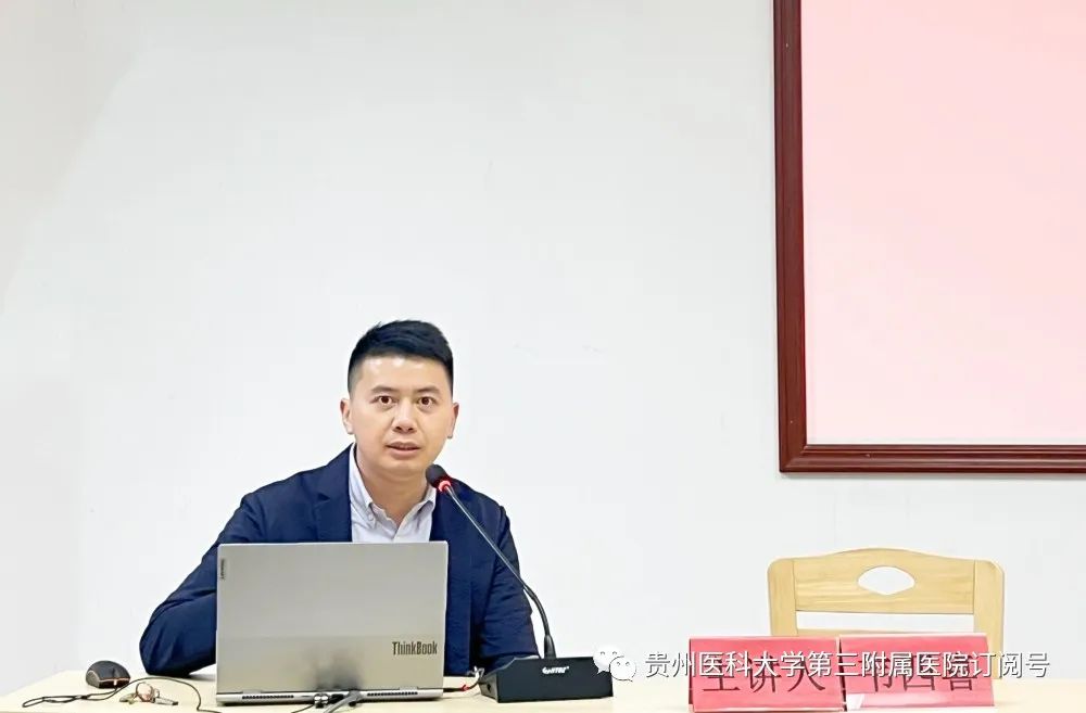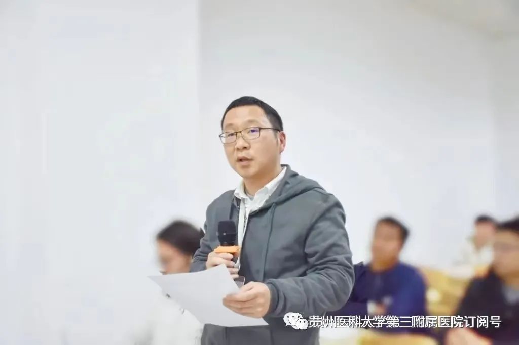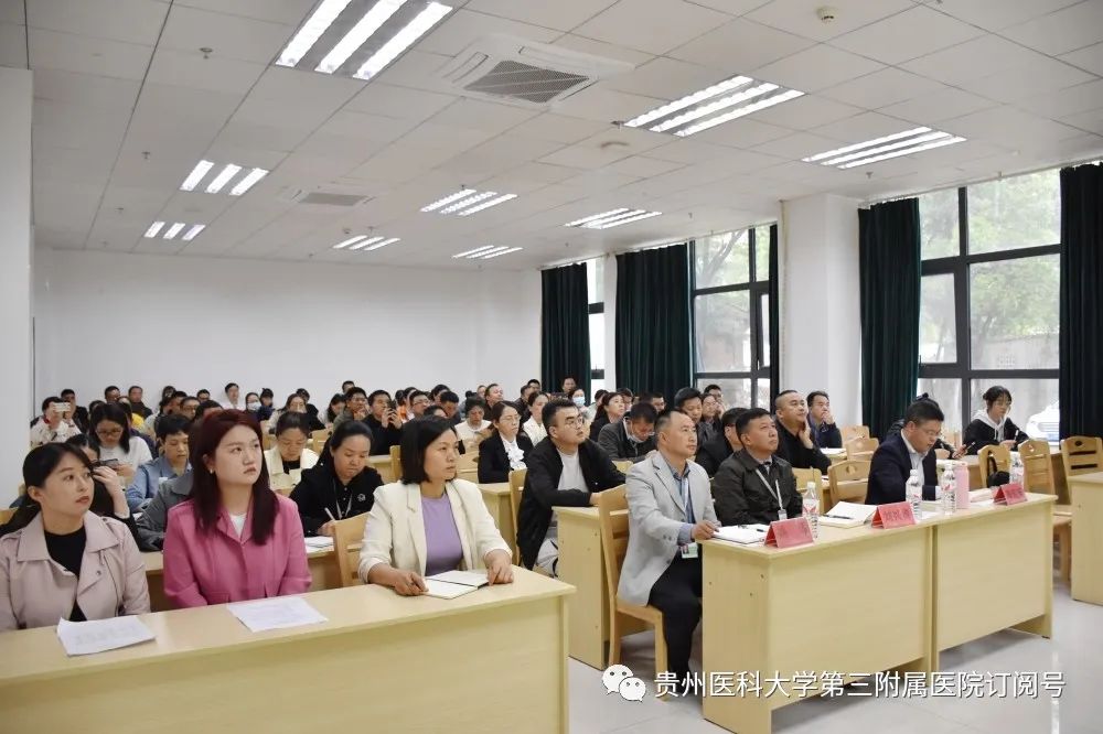 5月8日,我院邀请贵州医科大学附属医院临床检验中心临床生化分子诊断科副主任、医学博士韦四喜,贵州医科大学附属医院博士周定安到院开展科研专题讲座。医院党委书记姚辉,党委副书记、院长刘兴贵,临床医技科室负责人、护士长,副高以上职称、硕士研究生以上学历人员参加,会议由姚辉主持。