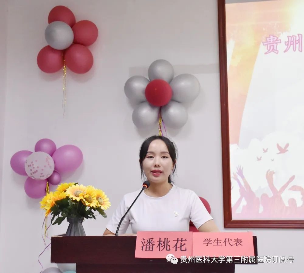 毕业生代表潘桃花发言,她表达了对医院的眷恋、师长的感激和母校的祝愿,希望同学们不断实现自我价值,找到属于自己的星辰大海。