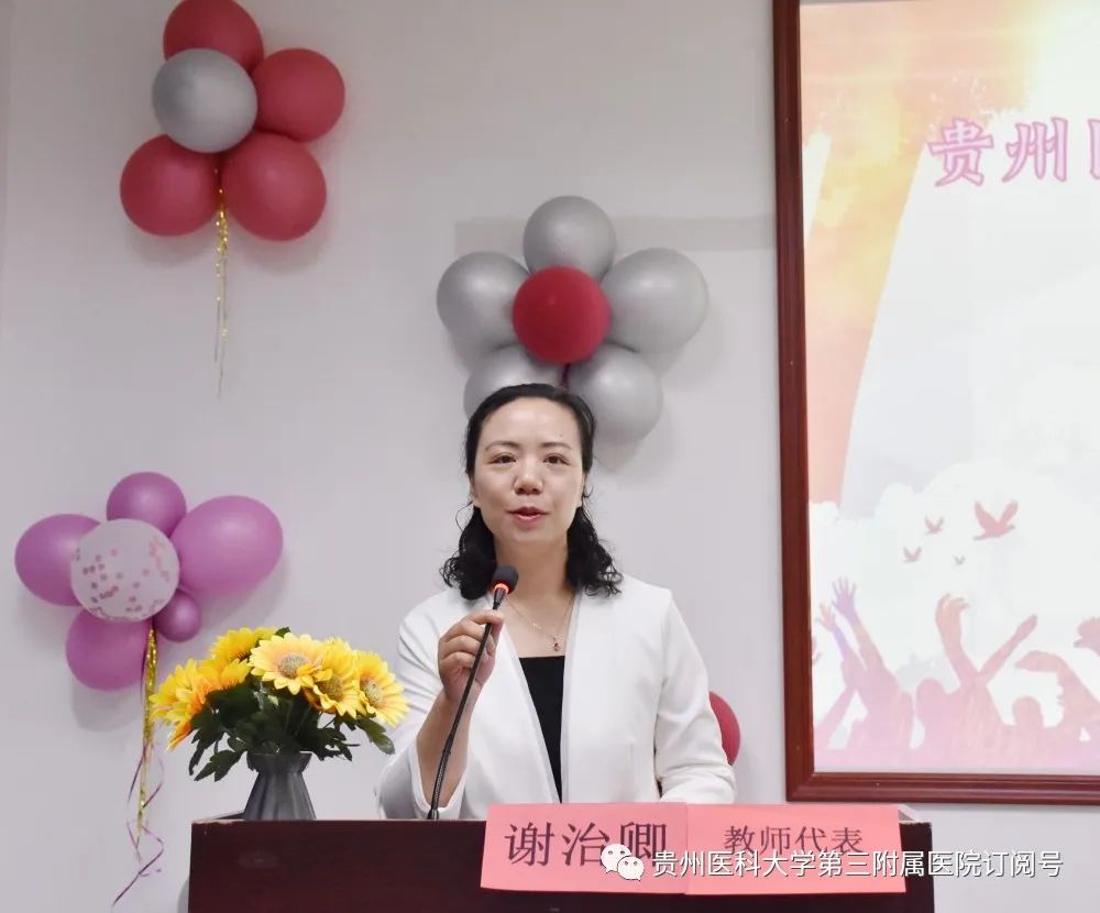 谢治卿代表全体老师发言,教导同学们不忘从医初心和救死扶伤的神圣职责,良好的医德和周到的服务为患者的健康护航。