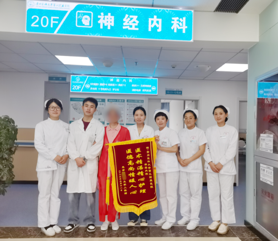 入院后,神经内科完善相关辅助检查后,诊断为脑梗死,立即为高奶奶制定了科学严谨的诊疗方案,经过科室医护人员精心治疗、耐心护理,高奶奶恢复良好,现已康复出院。为表达感谢,特赠送锦旗和《中华人民共和国民法典》到神经内科。