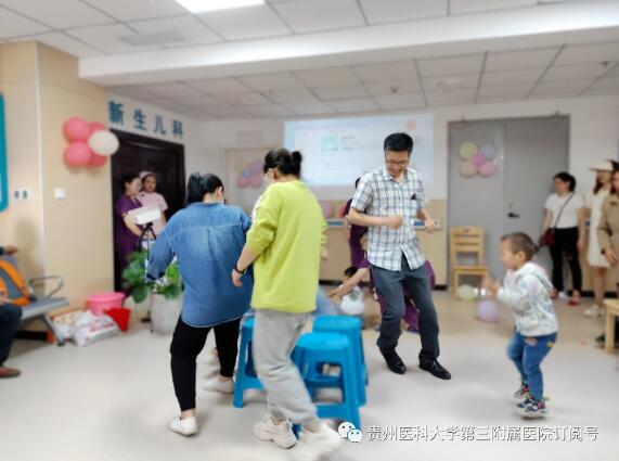 在护士的带领下,小朋友们表演新生儿科自创节目“在新生儿科的花园里面挖呀挖呀挖”。还开展了“抢板凳”的游戏活动,现场气氛热烈而温馨。