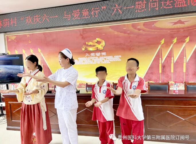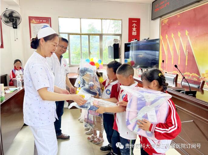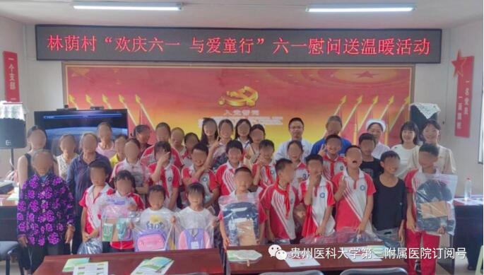 近日,我院第三党支部联合康复医学科到都匀市绿茵湖街道林荫村开展“六一”儿童节慰问留守儿童、孤残儿童活动。