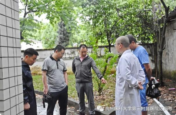 6月5日,都匀暴雨。我院消毒供应中心、精神科一病区门前出现积水,党委书记姚辉,党委副书记、院长刘兴贵,党委副书记杨胜华,副院长陈应强第一时间抵达现场,解决路面积水问题,确保医患安全。