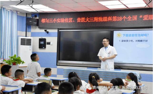 6月5日,我院眼科邀请贵州医科大学附属医院赵粟博士到都匀实验三小进行“爱眼护眼宣讲”活动。对护眼常识,如坐姿、看书、眼保健操、眼部调节等进行示范,培养学生养成良好的用眼习惯,降低近视发生率。