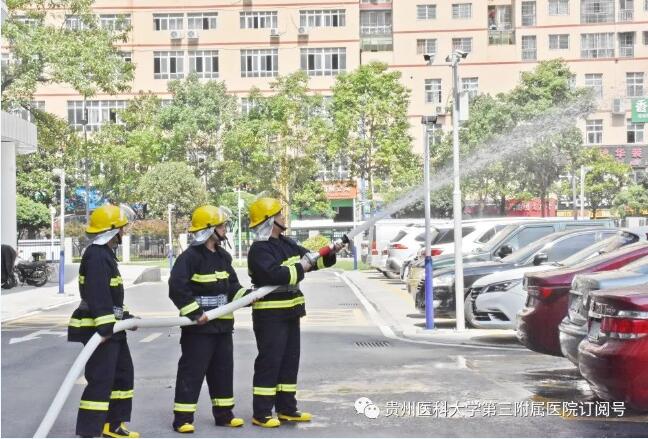 微型消防站紧急拉动演练是模拟院内地面停车区域车辆自燃及科室病房发生火情并有蔓延趋势,保卫科分工协作,分别铺设消防水带、操作消防栓、使用灭火器、模拟提示疏散人群等开展紧急扑救工作。