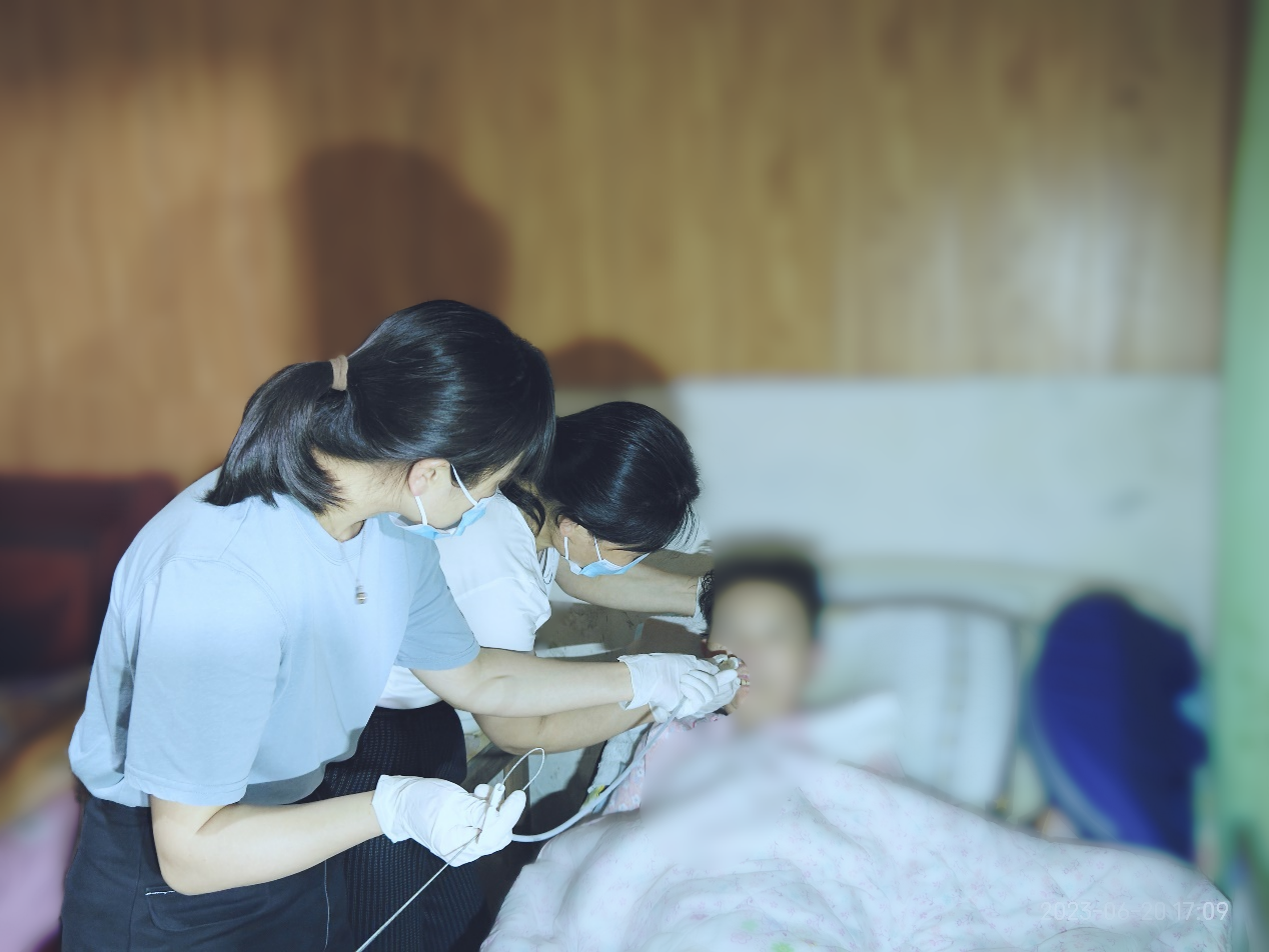 近日,又到了李奶奶需更换胃管的时间,我院外科片区护士长田喜贞、神经外科护士长王小静、护师陈年相利用休息时间,带上所需物品上门给李奶奶更换胃管。
