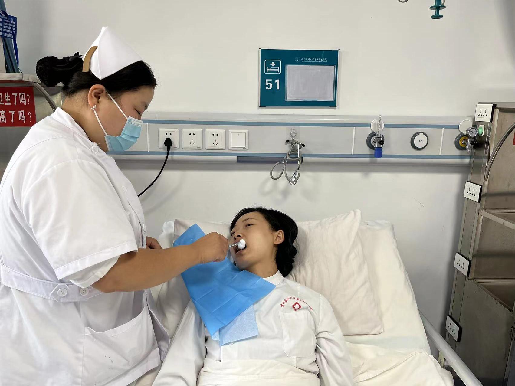 护师田堰梅:我在体验的是“口腔护理”。当同事将棉球放入口腔时会有严重的不适感,特别是棉球过湿后,口腔里积满了口水,咽也不敢咽。在平常的操作中,我们往往只关注病人病情需要,而忽略了患者的心理和身体的感受,经过此次体验,我会将棉球准备到合适的湿度,快速而轻柔地完成该项操作。