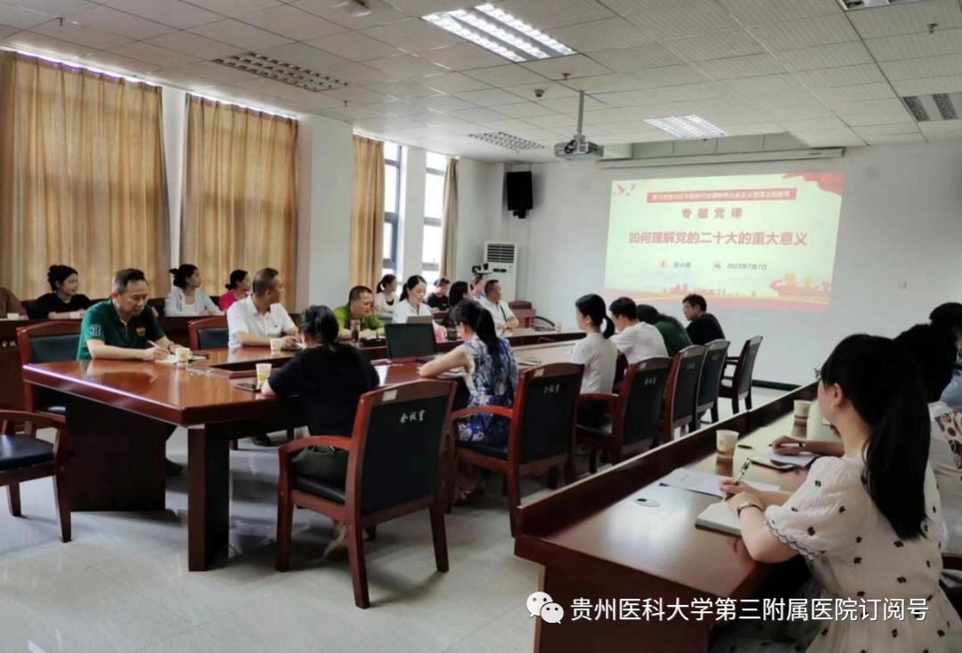 总会计师邵小峰以“如何理解党的二十大精神的重大意义”为题,强调要进一步深刻认识开展主题教育的重大政治意义、理论意义和实践意义。要求要牢固树立“以患者为中心”的理念,把主题教育的成效体现在为群众办实事、解难事上,要提高日常管理和工作效率,提升患者就医体验,为创建患者满意、职工满意、社会满意、国家满意的“四满意”医院而团结奋斗。